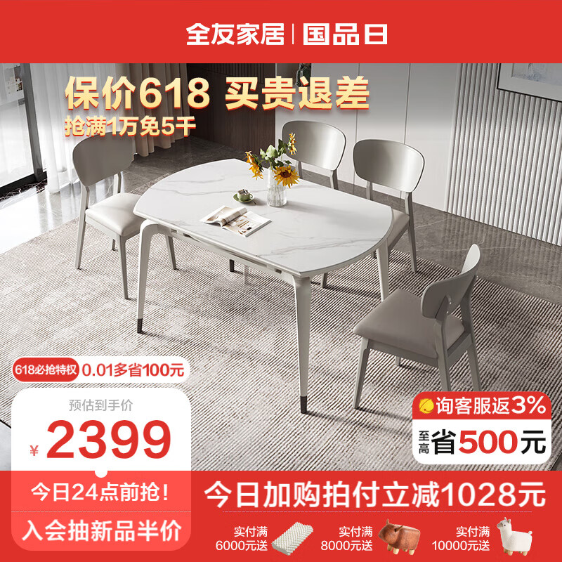 全友家居 餐桌现代简约岩板餐桌可圆可方伸缩功能餐厅家具DW1121价格:3427.14元!