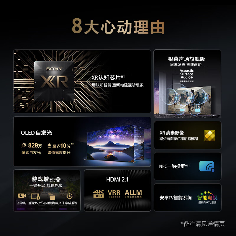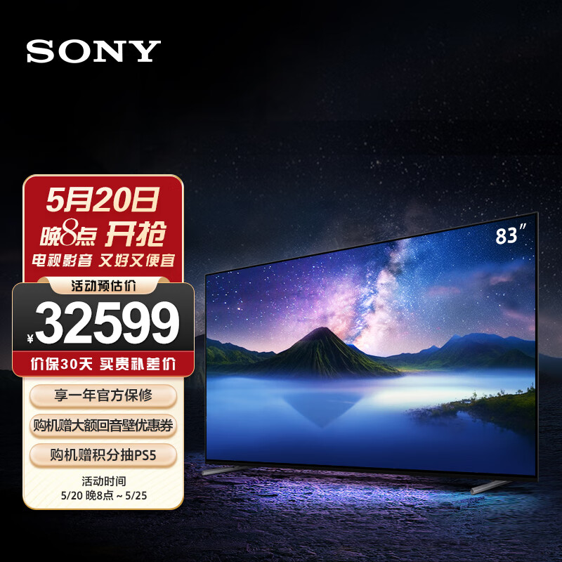 索尼(SONY)【官方直营】XR-83A80L 83英寸 4K OLED智能电视 屏幕发声 XR认知芯片 屏设计 京配上门价格:32999.00元!