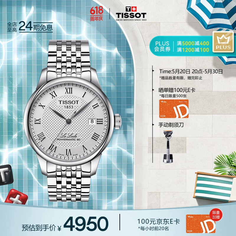 天梭(TISSOT)手表 力洛克系列钢带机械男表 520送男友T006.407.11.033.00价格:5500.00元!