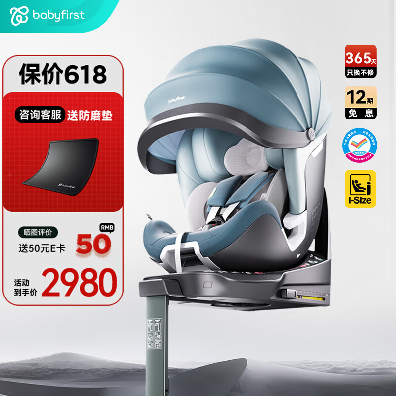 宝贝(Babyfirst)灵悦Pro婴儿童座椅宝宝汽车用0-4-7岁360度旋转 柔雾蓝R155A价格:3980.00元!