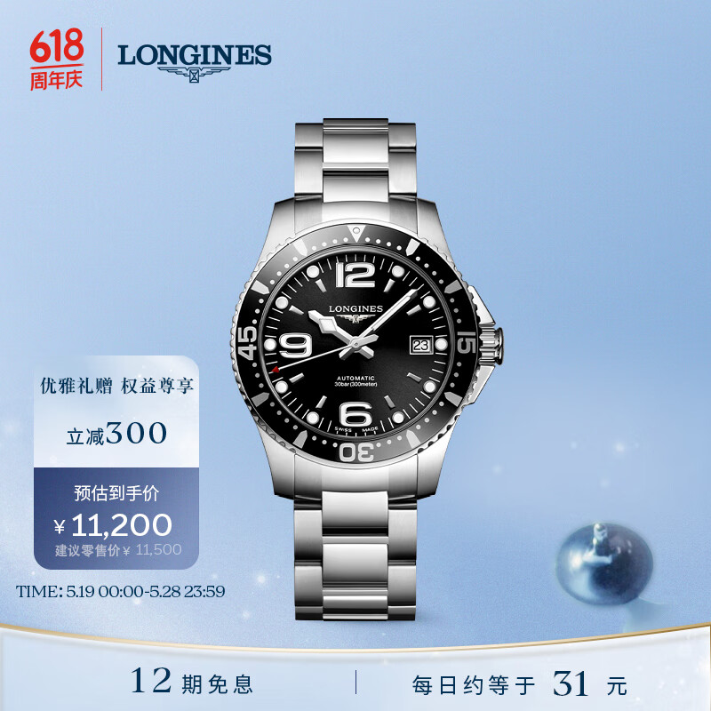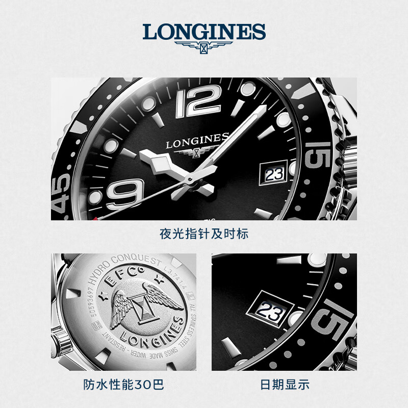 浪琴(LONGINES)彭于晏推荐 瑞士手表 康卡斯潜水系列 机械钢带男表 520情人节礼物 L37414566价格:11200.00元!