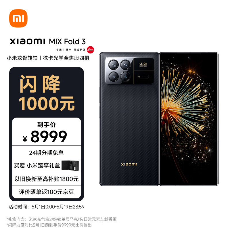 小米MIX Fold 3 小米龙骨转轴 徕卡光学全焦段四摄 16GB+1TB 龙鳞纤维版 5G AI手机 小米汽车互联价格:8999.00元!