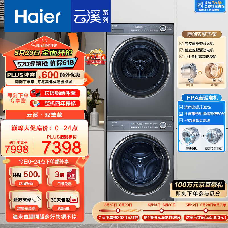 海尔(Haier)云溪176XS洗烘套装 10KG精华洗超薄滚筒洗衣机全自动+双擎热泵烘干机家用组合 376+176XS 以旧换新价格:7998.00元!