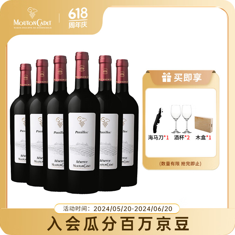 木桐嘉棣(MOUTON CADET) 法国 波尔多 珍藏 波亚克 红葡萄酒 750ml 整箱价格:2754.00元!