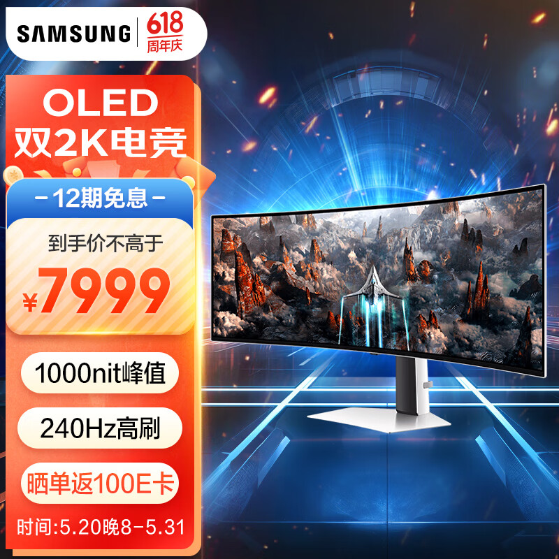 三星(SAMSUNG)49英寸 OLED 240Hz 双2K 曲面 0.03ms 1000nit G93SC 玄龙骑士 电竞显示器 LS49CG934SCXXF价格:10999.00元!