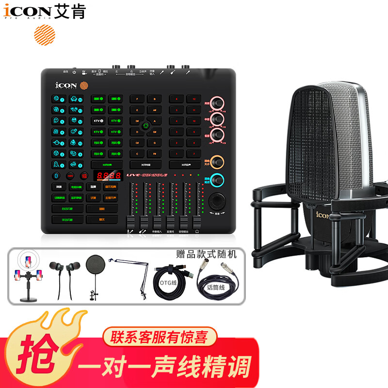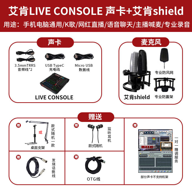 艾肯(iCON)Live Console声卡+神盾麦克风话筒套餐蓝牙伴奏手机喊麦唱歌录音户外主播直播设备 价格:4408.00元!