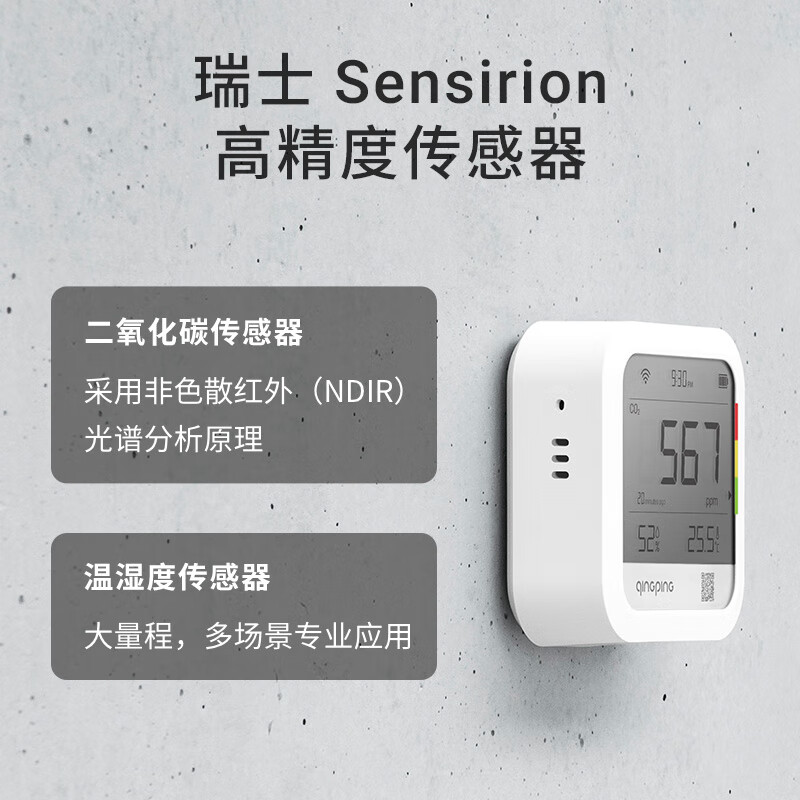 青萍二氧化碳和温湿度检测仪高精度传感器远程智能监测警报室内大棚Wi-Fi版价格:349.00元!