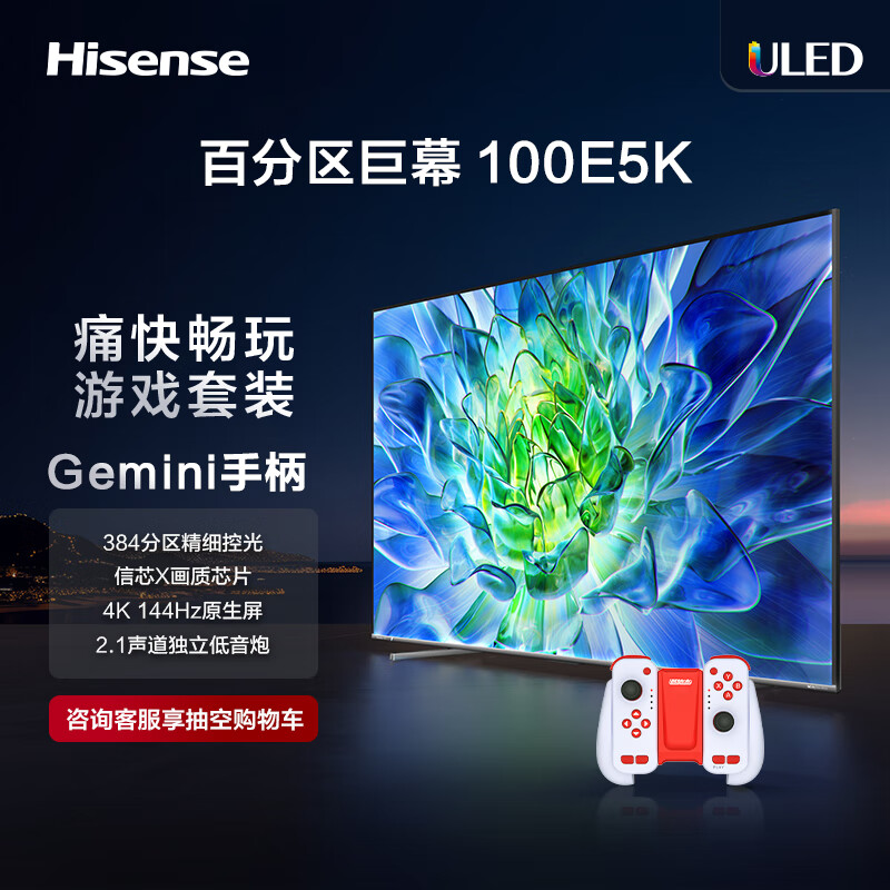 海信电视100E5K+运动加加Gemini分体手柄三合一体感交互手柄套装 100英寸 液晶智能平板电视机价格:17398.00元!