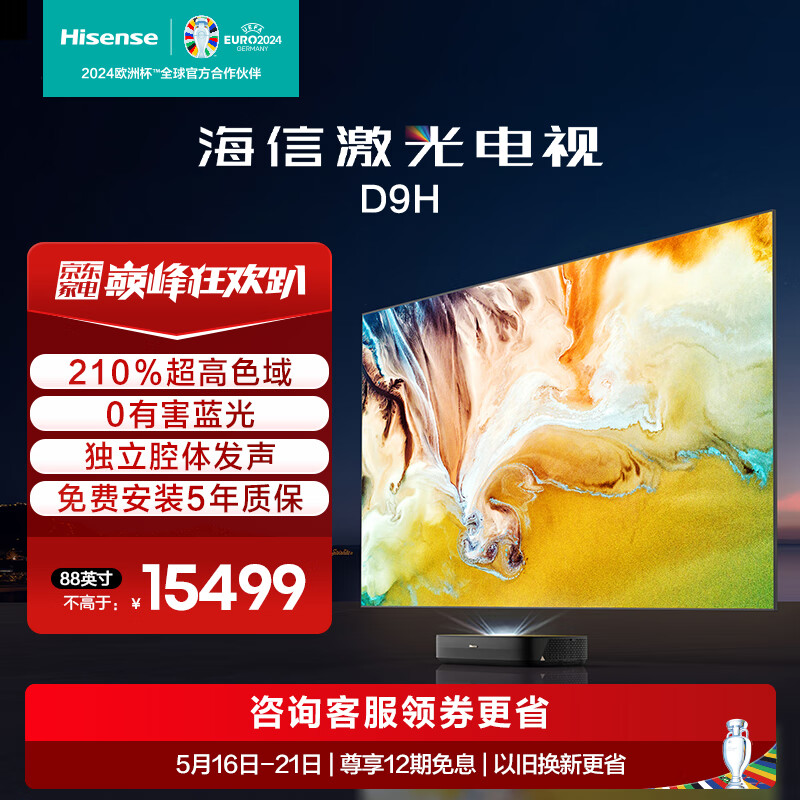 海信激光电视88D9H 88英寸 210%高色域三色电视机 128G超大内存4K超高清 以旧换新价格:15499.00元!