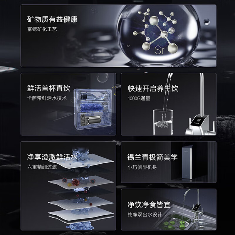 卡萨帝(Casarte)净水器家用净水机 富锶鲜活水矿泉水1000G大通量纯净双出水 CRO1000-DFACU1价格:5299.00元!