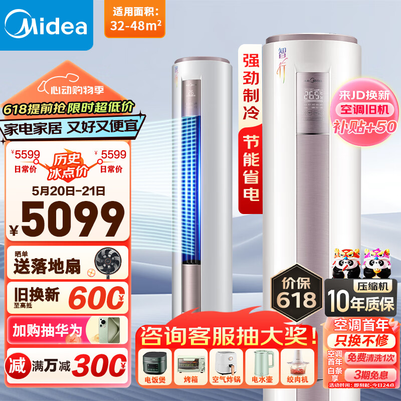 美的(Midea)智行三代自清洁三级能效3匹空调变频冷暖两用制冷制热柜机立式客厅大出风口空调家电以旧换新YA400价格:5099.00元!