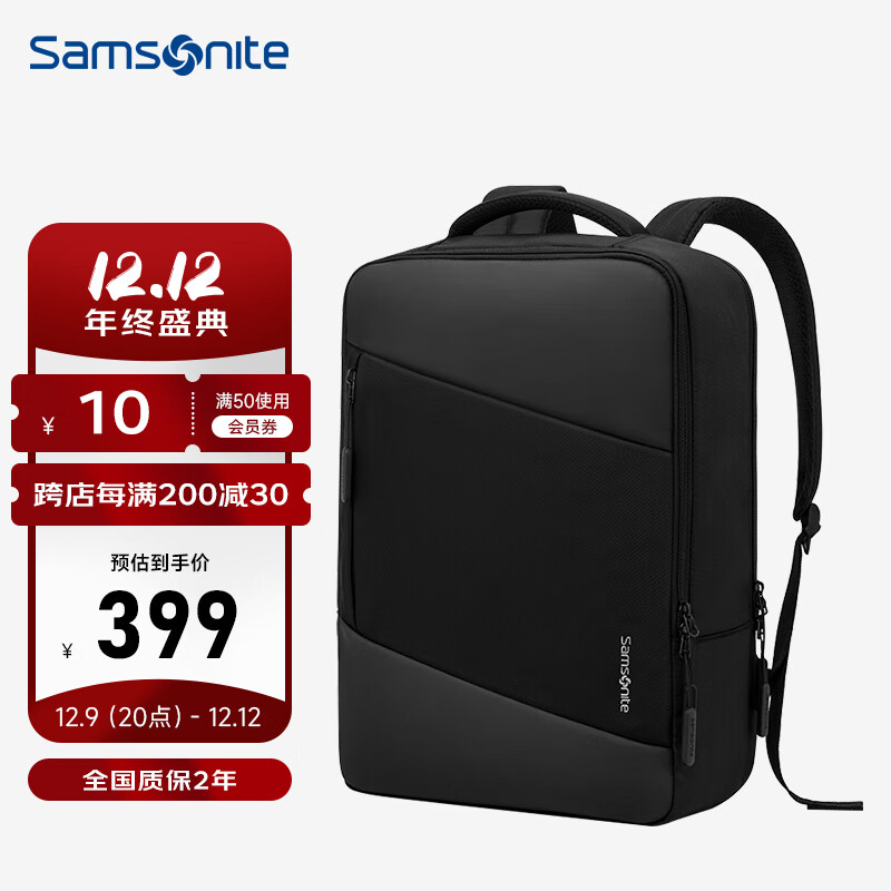 新秀丽(Samsonite)双肩包电脑包15.6英寸男士商务背包旅行包笔记本电脑包 BT6黑色价格:459.00元!