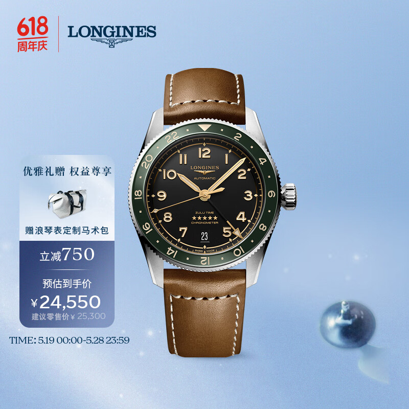 浪琴(LONGINES)瑞士手表 先行者系列祖鲁时间 机械皮带男女表 L38024632价格:24550.00元!