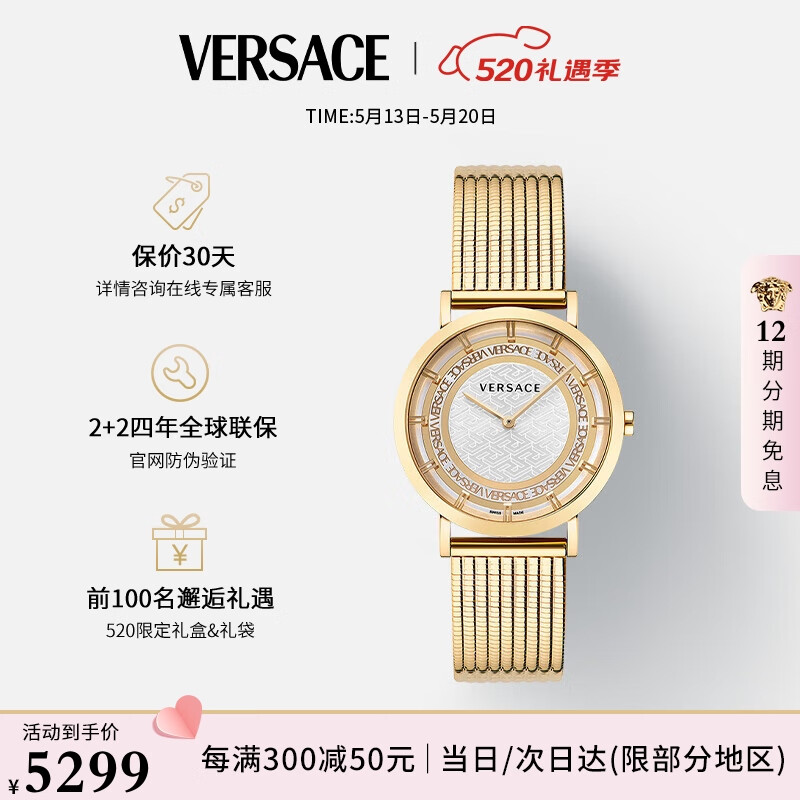 范思哲(VERSACE)瑞士手表白金石英女表生日礼物|520情人节礼物送女友VE3M00522价格:6299.00元!