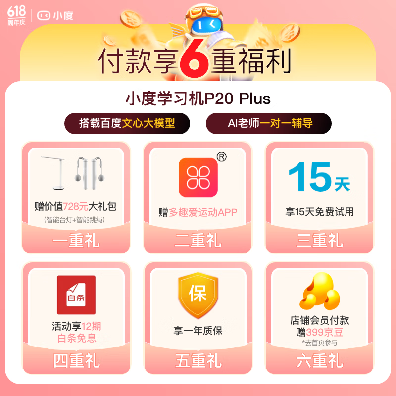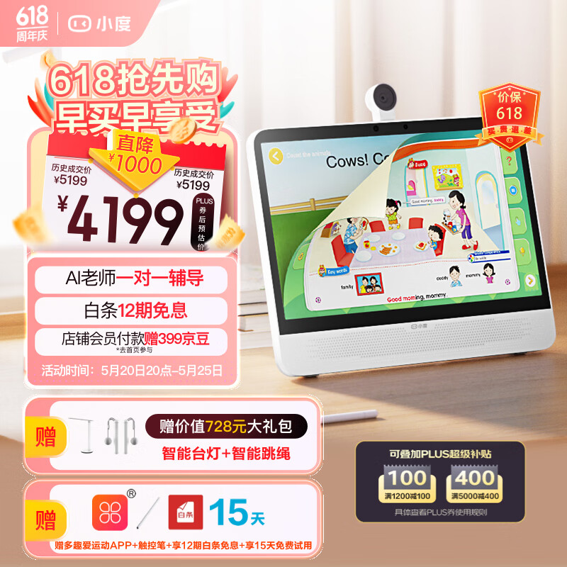 小度大屏学习机P20Plus(6+256G)15.6英寸小学到高中学生平板电脑 百度文心大模型 AI精准学 多娃系统价格:4299.00元!