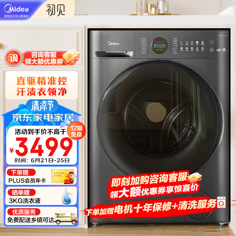 美的(Midea)滚筒洗衣机全自动 初见系列 737 洗烘一体机 智能投放 直驱变频 香薰 10公斤 MD100VT737WIDT价格:5599.00元!