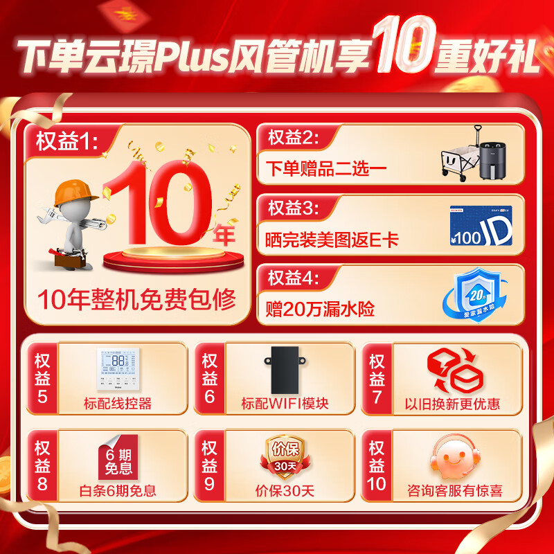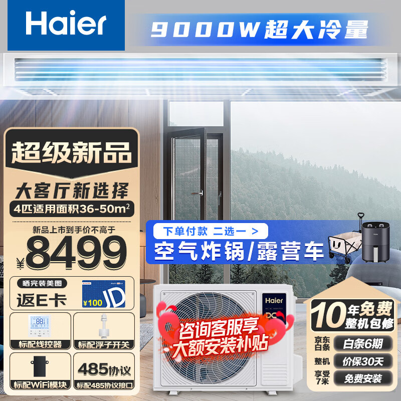 海尔(Haier)云璟Plus中央空调风管机一拖一 4匹大冷量一级能效变频 嵌入式空调 KFRd-90NW/76EG81U1 京配价格:8499.00元!