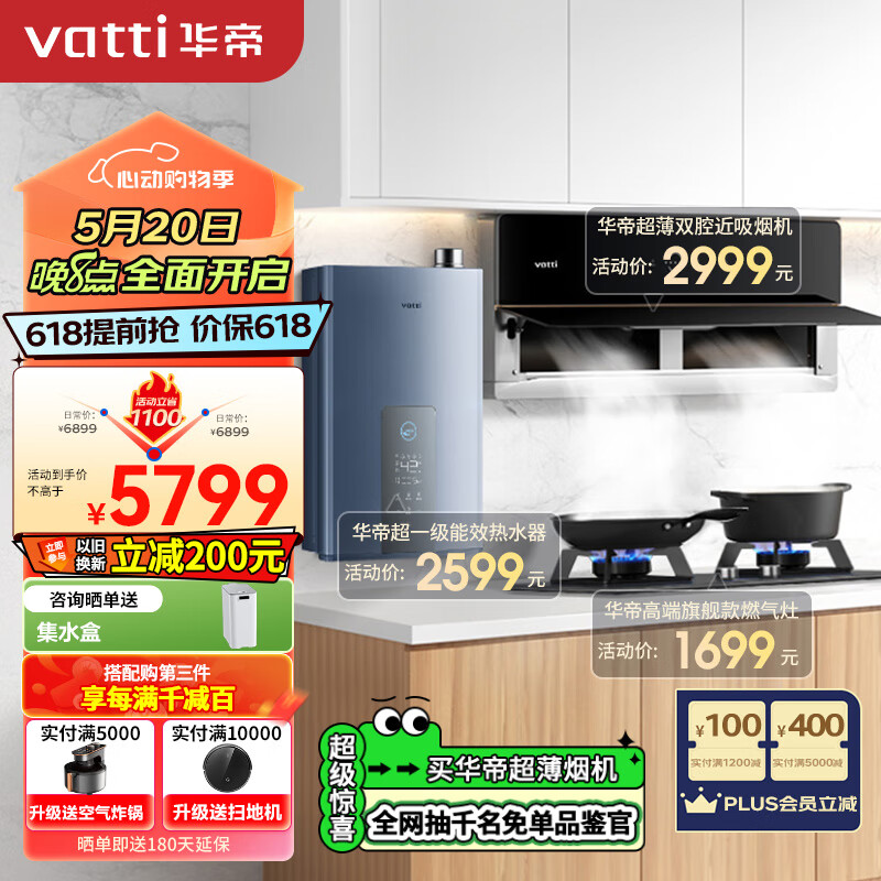 华帝(VATTI)抽油烟机变频超薄近吸双腔25风量油烟机灶具热水器家用厨房多件套i11210+76B+254-16(天然气)价格:6699.00元!
