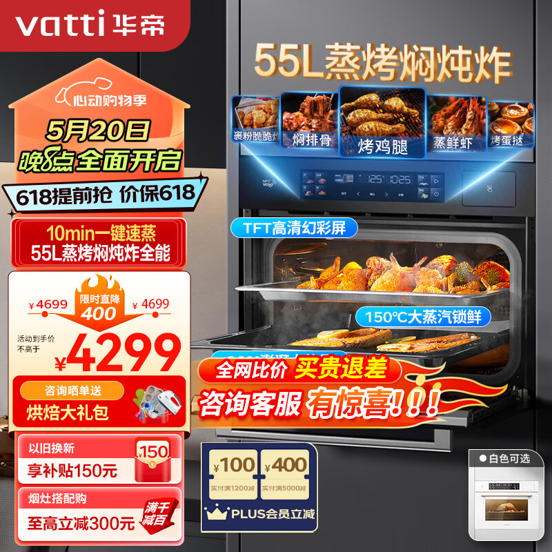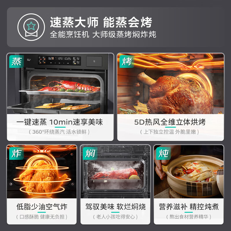 华帝(VATTI)55L蒸烤箱一体机嵌入式家用蒸烤炖炸大热风大容量一键速蒸搪瓷内胆蒸箱烤箱 i23025 V5价格:4699.00元!