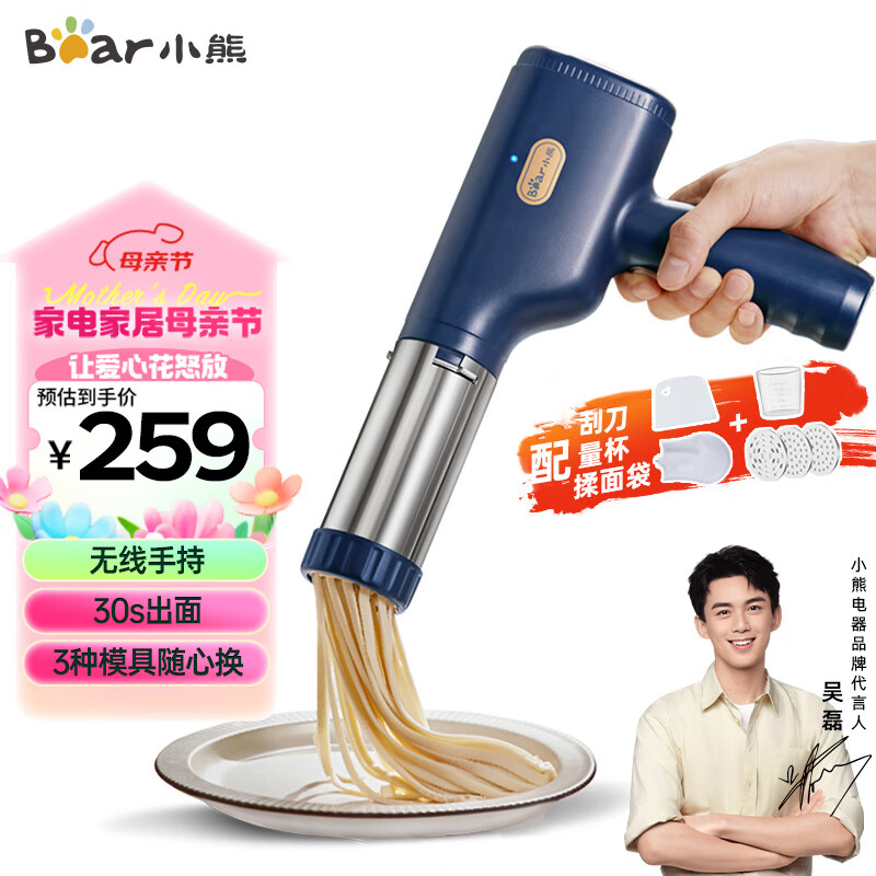 小熊(Bear )面条机家用压面机手持压面枪小型电动自动不锈钢压面条机 YMJ-A01V1 三种出面模具价格:259.00元!