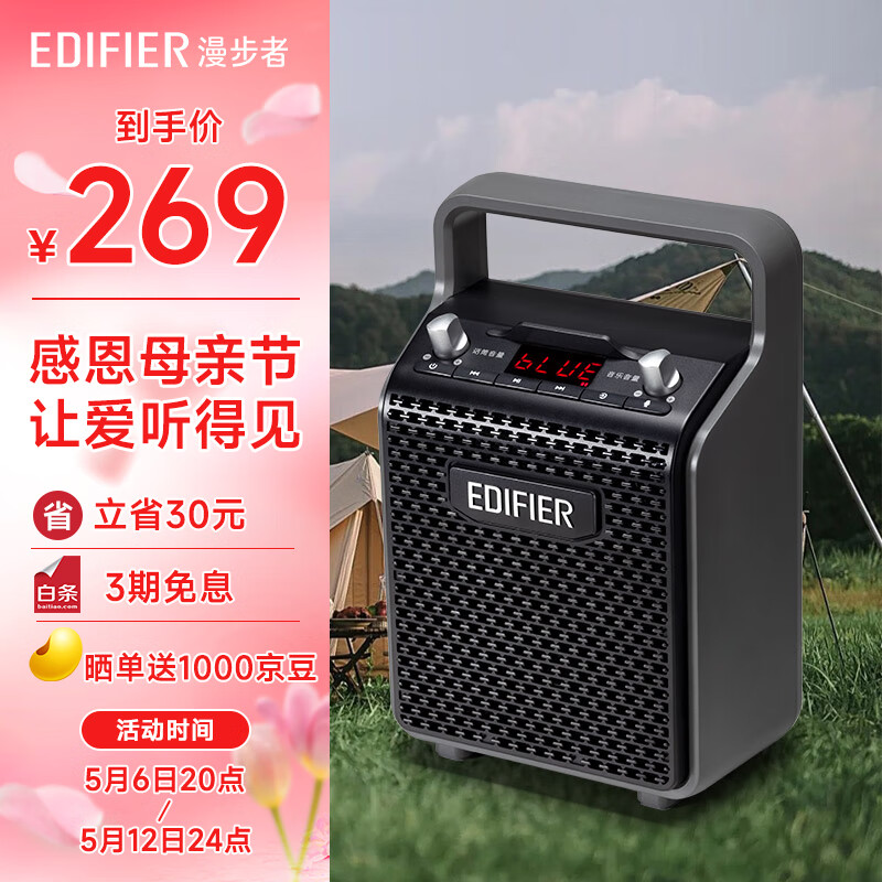 漫步者(EDIFIER)PP205 手提便携式蓝牙音箱 广场舞音响 户外露营 商超导购 舞台会议教学扩音器价格:269.00元!