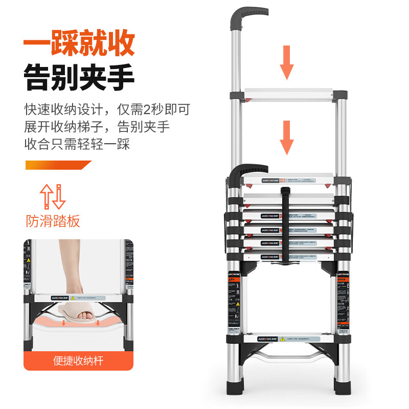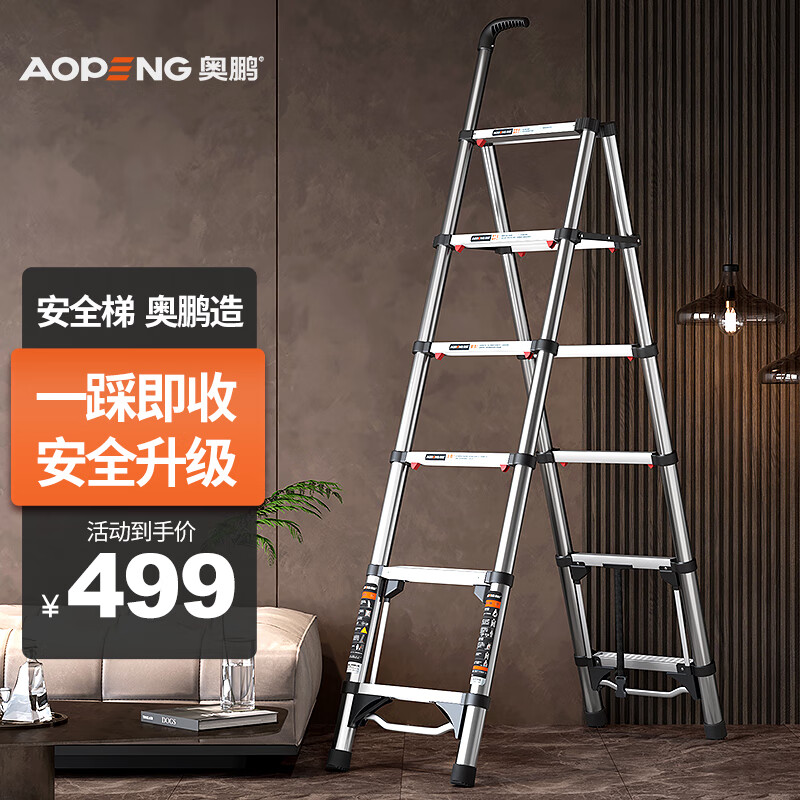 奥鹏梯子家用伸缩梯人字梯楼梯扶梯六步工程梯AP-539C-370D价格:499.00元!