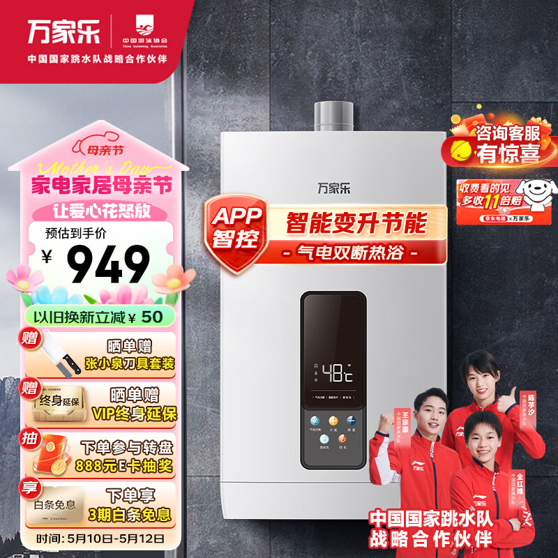 万家乐13升燃气热水器天然气节能省气智能变升恒温气电双断多重防冻低水压启动APP控制JSQ26-13DP3(F)价格:948.99元!