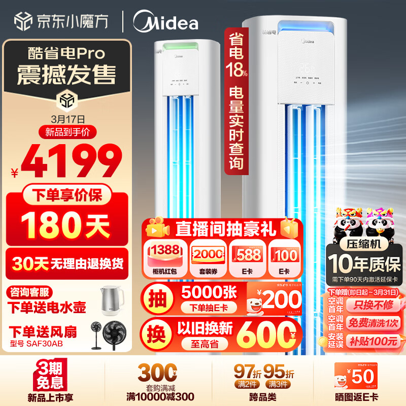 美的(Midea)空调 2匹 酷省电 新能效 变频冷暖 空调立式 客厅空调柜机 KFR-51LW/N8KS1-3P价格:4199.00元!