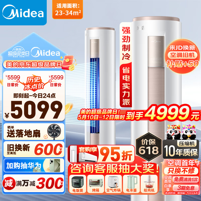 美的(Midea)空调柜机新一级能效 全直流变频冷暖两用 省电客厅圆柱立式落地式客厅静音2匹风酷 【智行相似款】价格:4999.00元!