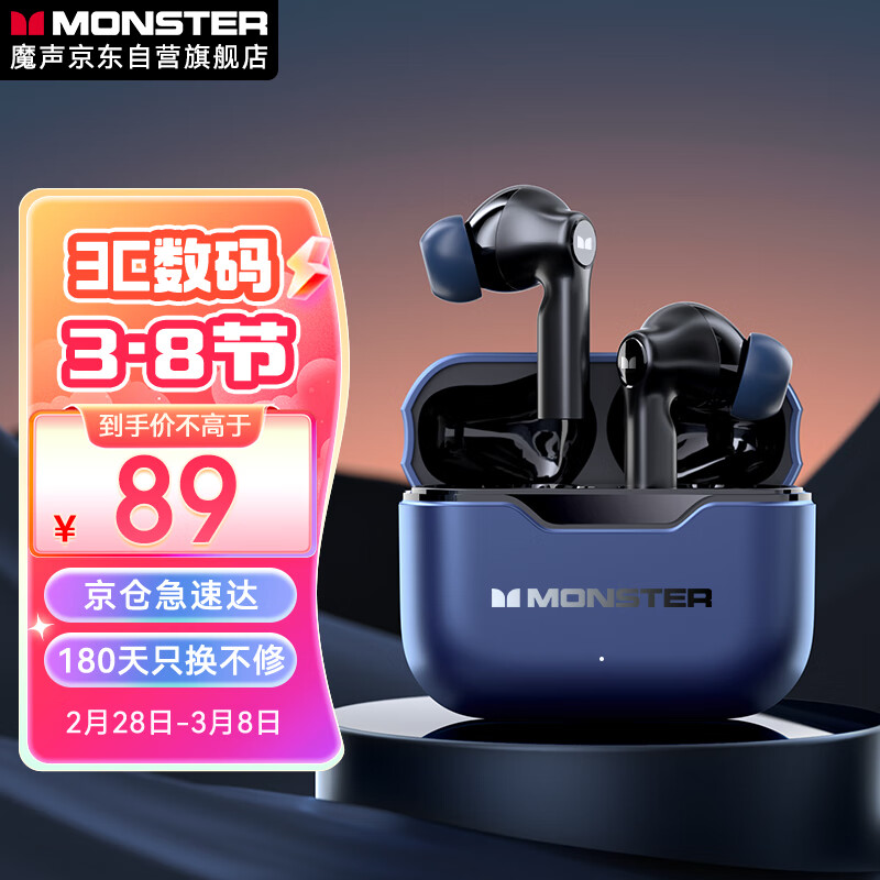 魔声(Monster) XKT02真无线蓝牙耳机入耳式高品质降噪适用于华为苹果小米oppo 蓝色价格:109.00元!