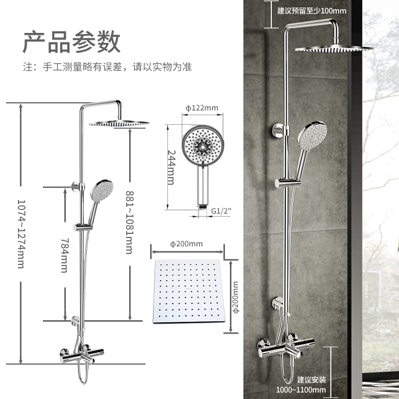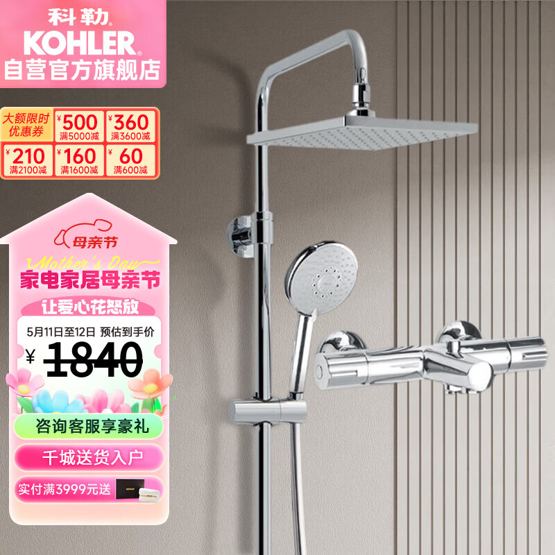 科勒(KOHLER)恒温花洒可升降淋浴器花洒套装三出水恒温淋浴柱 方形顶喷 26470价格:2352.00元!