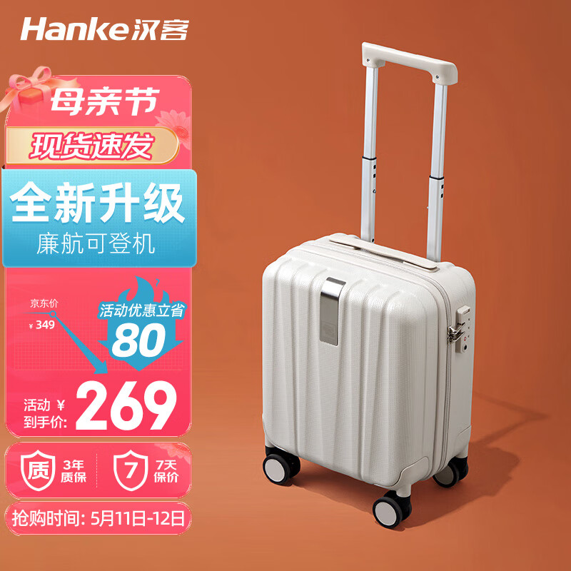 汉客行李箱男拉杆箱女登机旅行箱14英寸象牙白密码箱镇店之宝再次升级价格:349.00元!