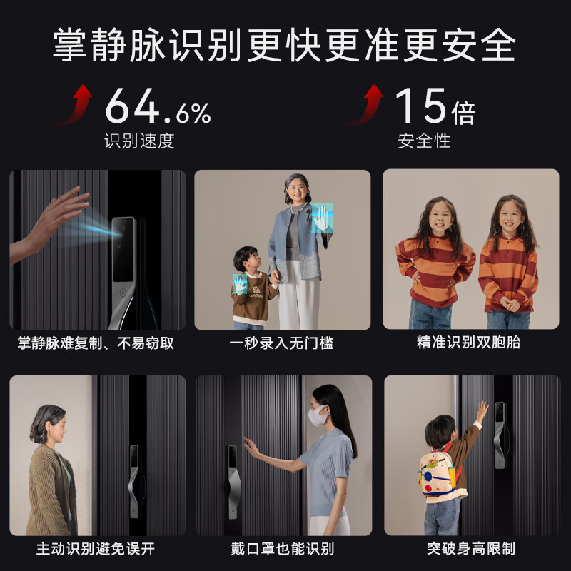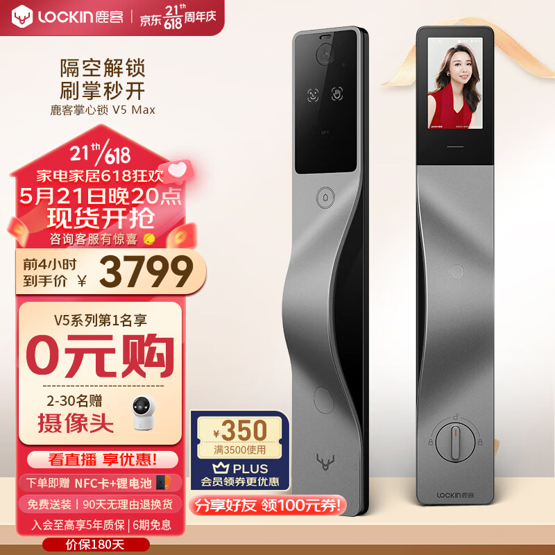 鹿客(lockin)掌心锁V5 Max掌静脉人脸识别猫眼屏电子锁APP智联适用右开价格:3999.00元!