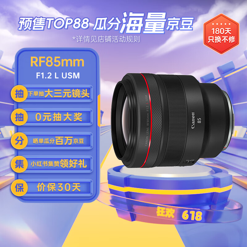 佳能(Canon)RF85mm F1.2 L USM 中远摄定焦镜头 微单(全画幅EOS R系统专用)适用于 R RP系列价格:19999.00元!