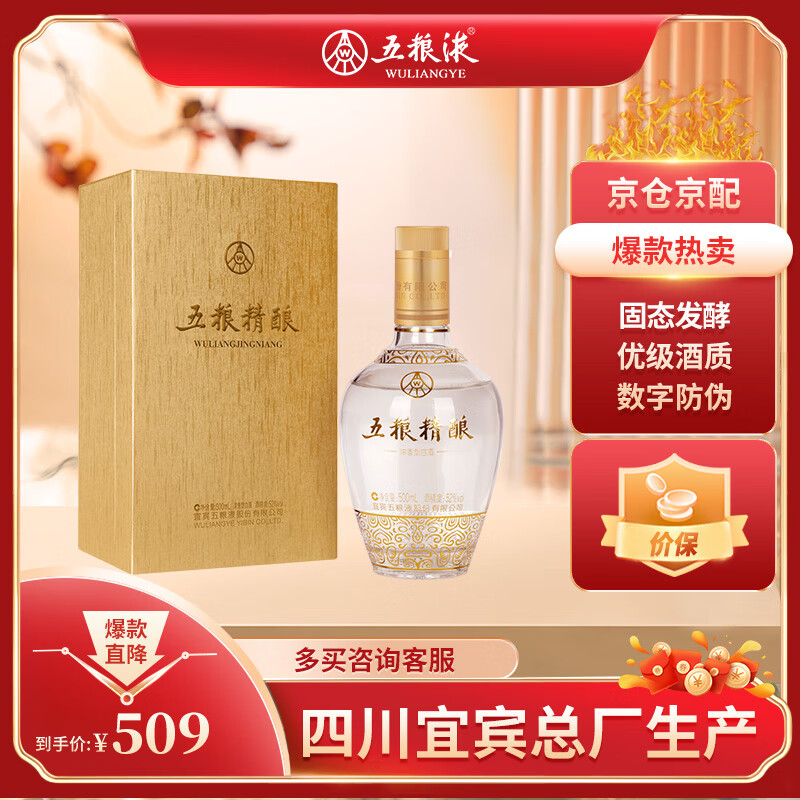 五粮液股份 五粮精酿 拉丝金 浓香型白酒 52度 500ml 单瓶 端午节价格:509.00元!
