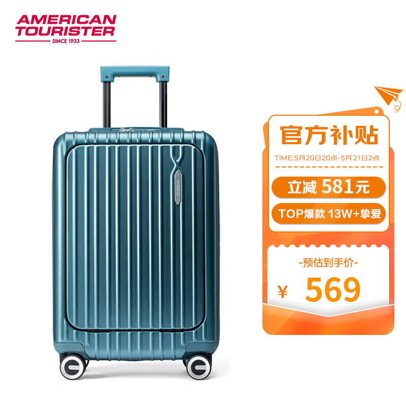 美旅箱包前开口可登机行李箱20英寸轻便拉杆箱飞机轮旅行密码箱79B松石绿价格:599.00元!