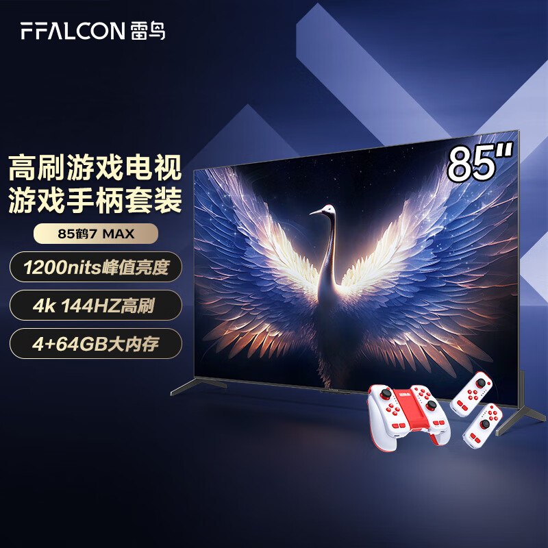 FFALCON雷鸟 MiniLED游戏电视85英寸鹤7MAX+运动加加游戏手柄套装 144Hz高刷 4K液晶电视机85R675C价格:8198.00元!