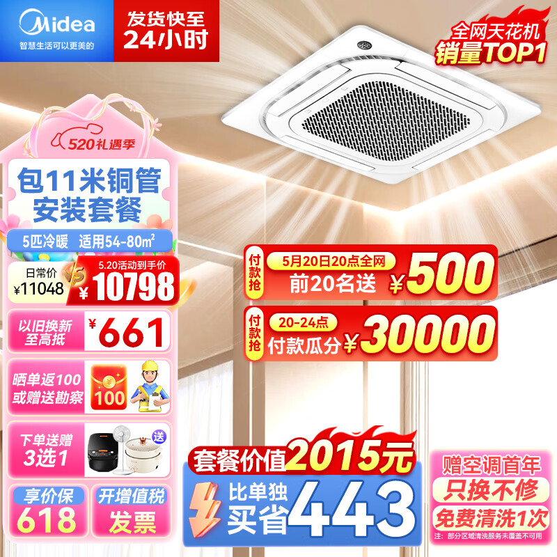 美的(Midea)5匹天花机空调吸顶吊顶空调 商用中央空调嵌入式一拖一380v包11米铜管安装RFD-120QW/BSDN8Y-D(B3)价格:11048.00元!