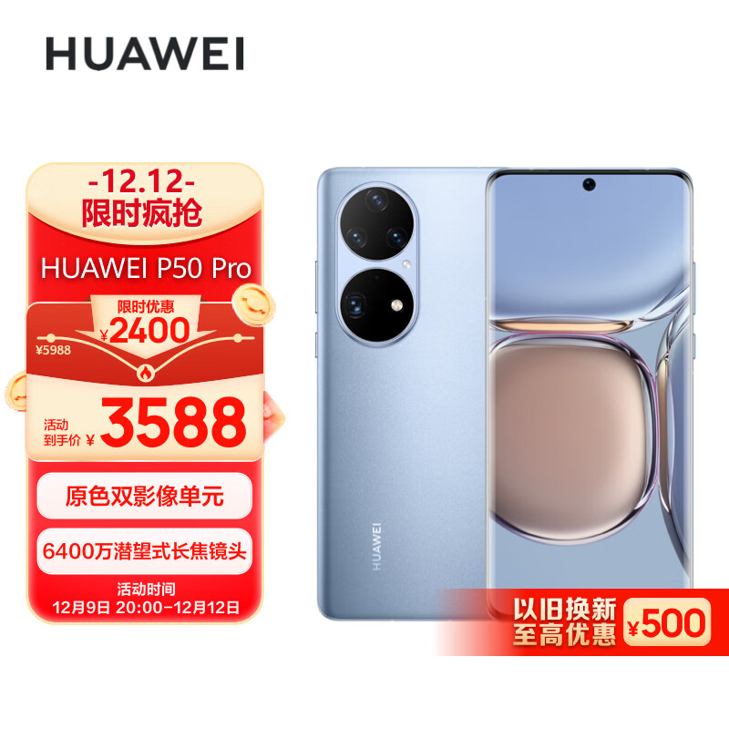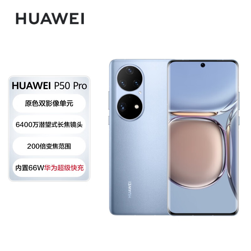 华为/HUAWEI P50 Pro 原色双影像单元 万象双环 搭载HarmonyOS 2 8GB+256GB星河蓝 华为手机价格:3588.00元!