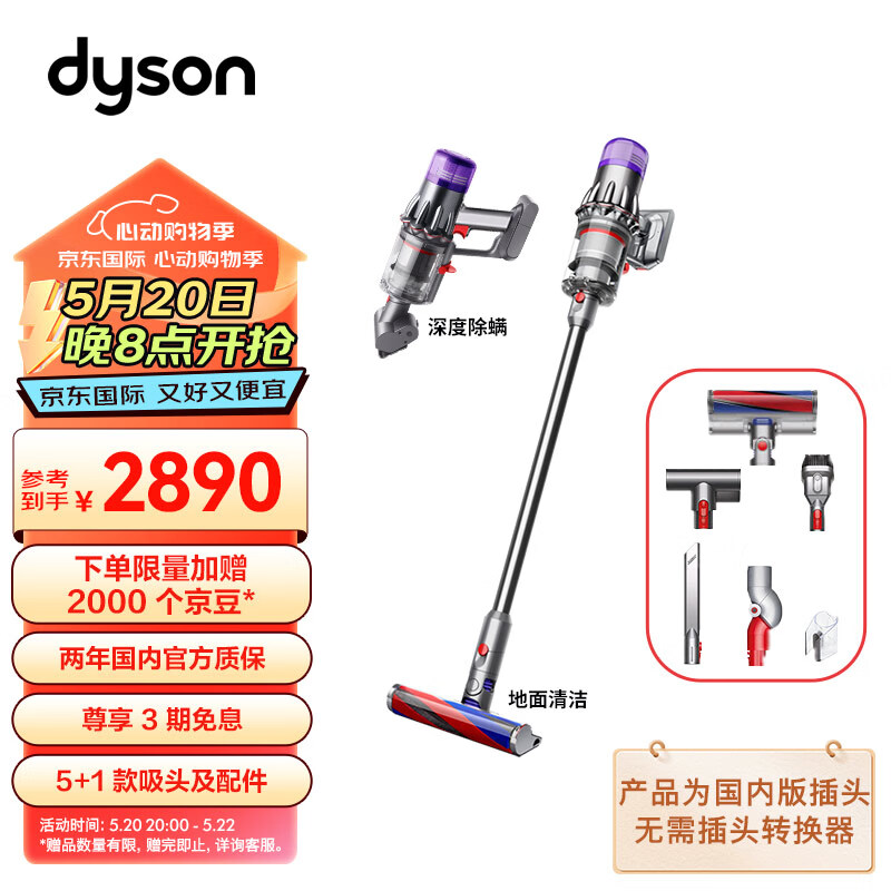 戴森(DYSON)V10轻量版 Digital Slim Fluffy 轻量无绳手持吸尘器 吸力持久强劲 家用吸尘除菌除螨仪价格:2890.00元!