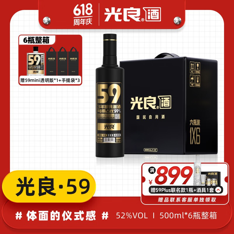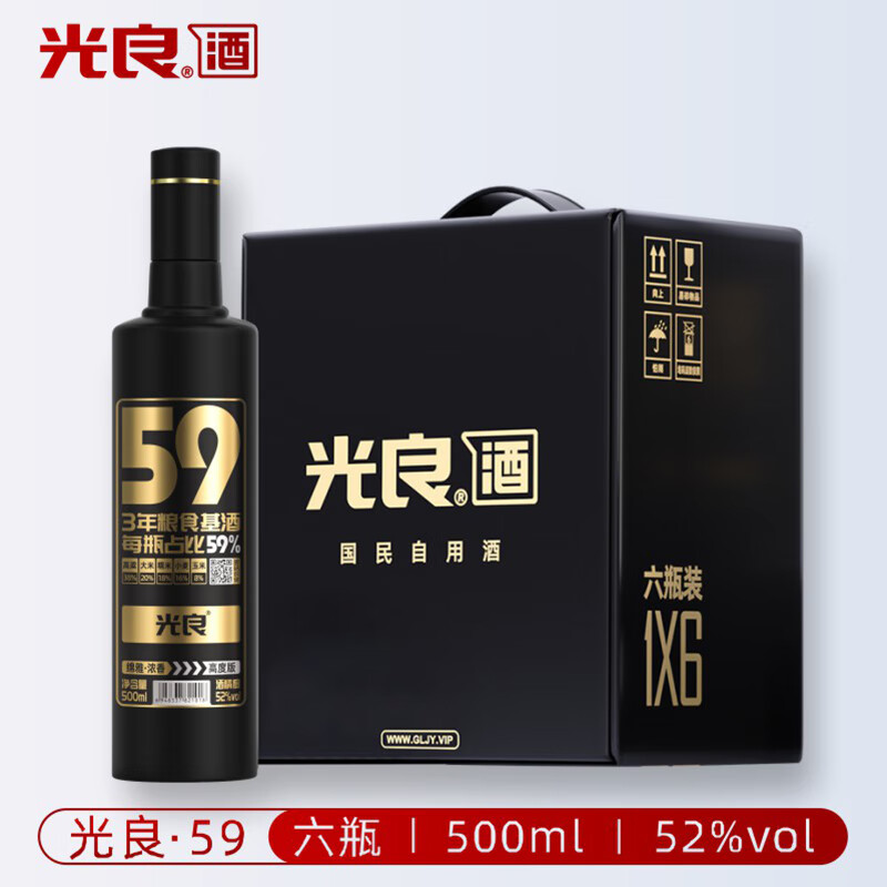 光良 数据瓶59 浓香型白酒 52度 500ml*6瓶 整箱装价格:614.00元!