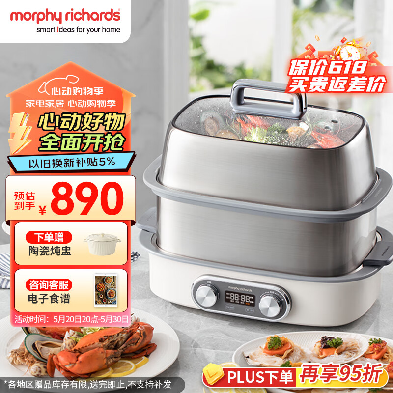 摩飞电器(Morphyrichards)电蒸锅 家用大容量蒸炖锅速蒸锅 多功能预约定时电炖锅隔水炖煮锅【含炖盅组件】MR1168白价格:890.00元!