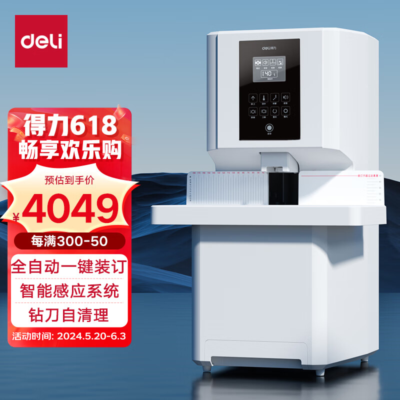 得力50mm会计凭证全自动装订机500页财务装订机电动打孔器办公档案铆管热熔装订机文件打孔器14660s价格:4799.00元!