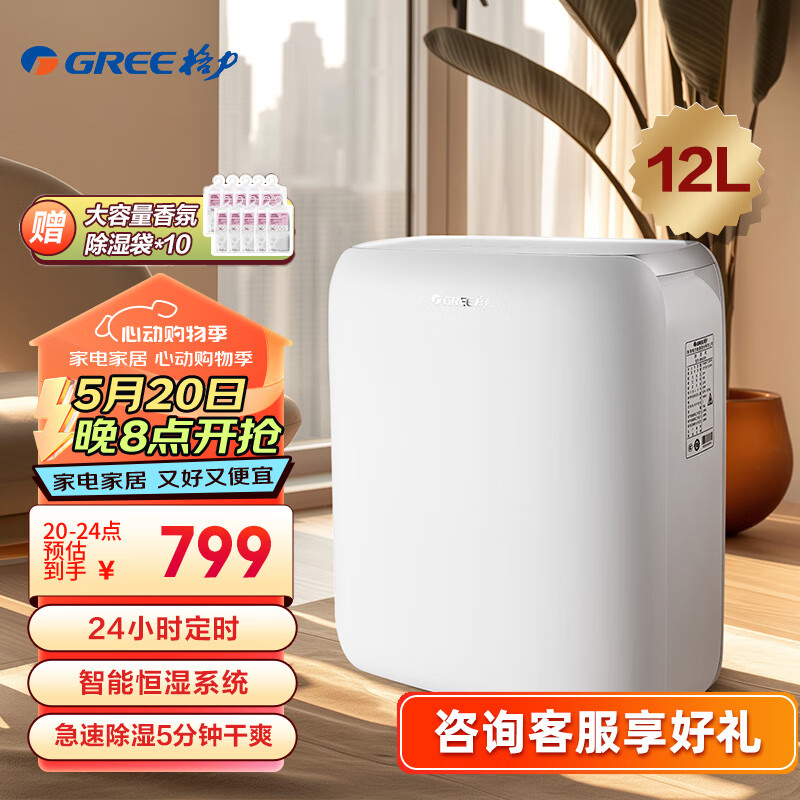格力(GREE)抽湿机/除湿机 除湿量12升/天 家用轻音卧室办公室地下室低噪干衣除湿器长效定时 (DH12EN)价格:849.00元!