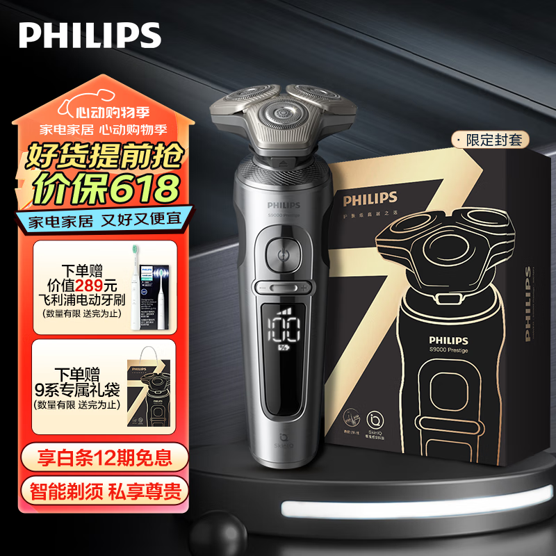 飞利浦(PHILIPS)电动剃须刀蜂巢奢享9系 SkinIQ肌能感应刮胡刀 生日礼物 送男友 送老公【整机荷兰进口】价格:3299.00元!