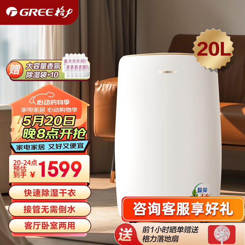 格力(GREE)抽湿机/除湿机 除湿量20升/天 家用轻音卧室办公室地下室干衣除湿器 智能数控(DH20EH)价格:1699.00元!