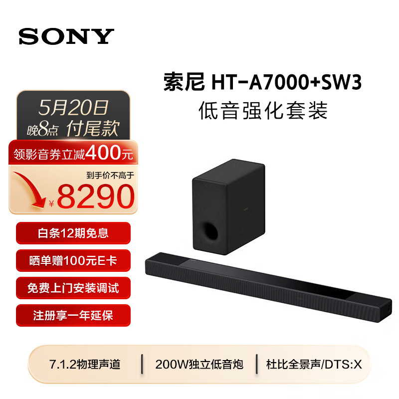 索尼(SONY)HT-A7000+SW3 标准低音套装 7.1.2 全景声 4K120Hz VRR ALLM 回音壁 家庭影院 电视音响 蓝牙价格:8690.00元!