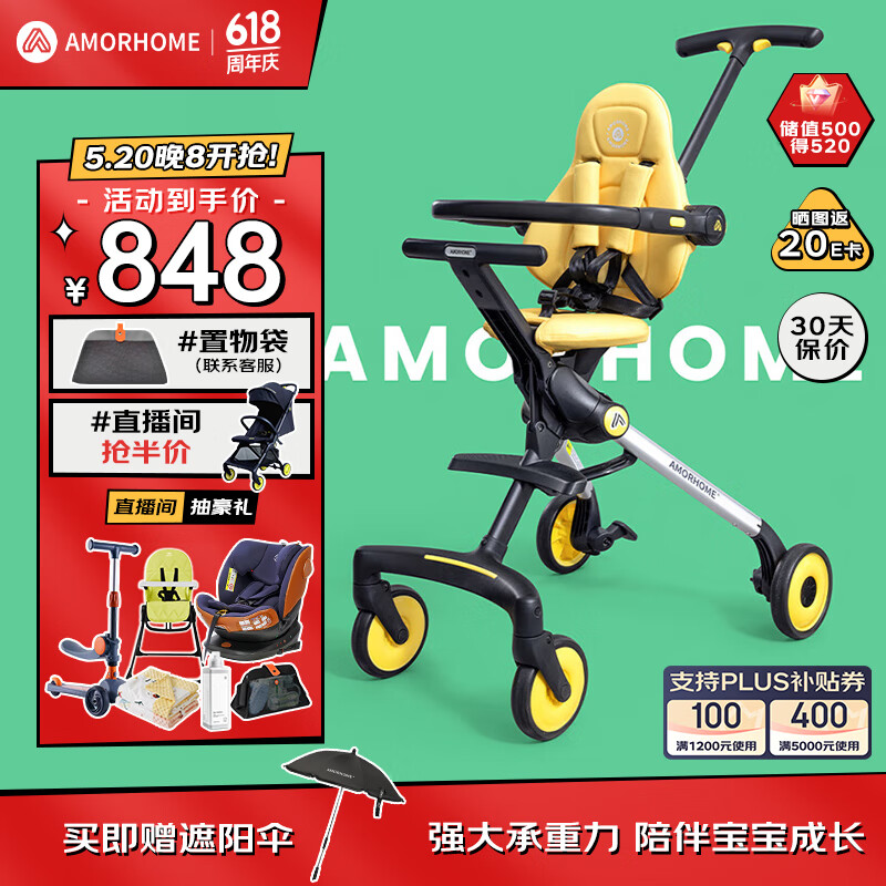 AMORHOME遛娃神器婴儿推车可坐轻便折叠宝宝溜娃 蜜瓜黄全包款价格:1080.00元!