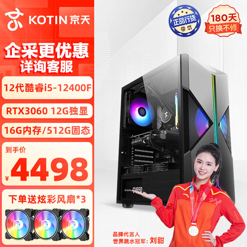 京天Duel D536 i5-12400F/RTX3060 12G/16G/512G/3年上门电脑台式机吃鸡游戏组装电脑整机DIY主机价格:4498.00元!