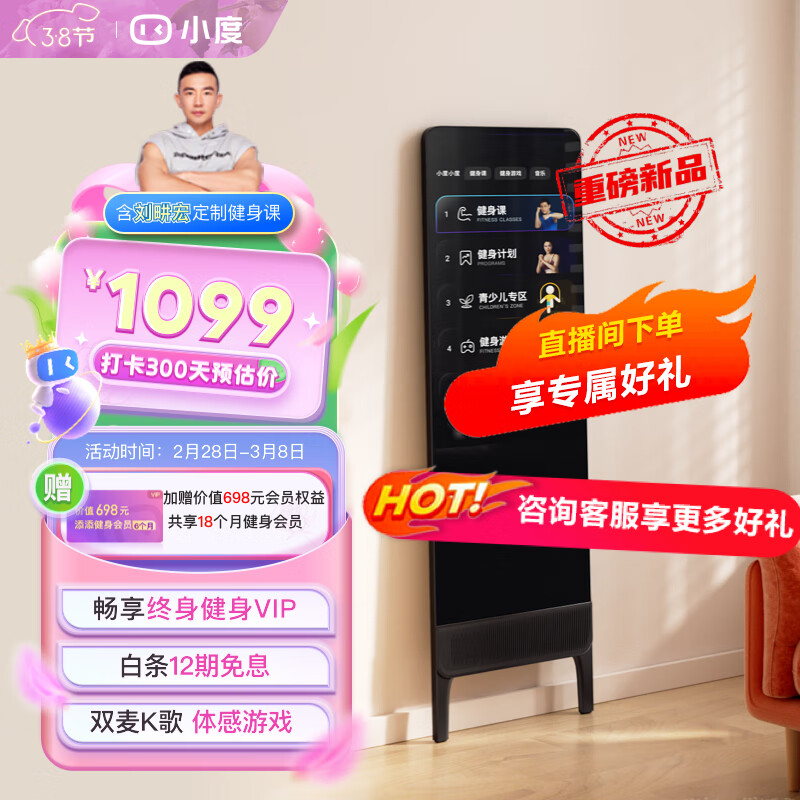小度添添智能健身镜 S40 旗舰版 魔镜 运动镜 穿衣镜 AI居家减肥塑身燃脂 含终身会员 女神礼物价格:2099.00元!